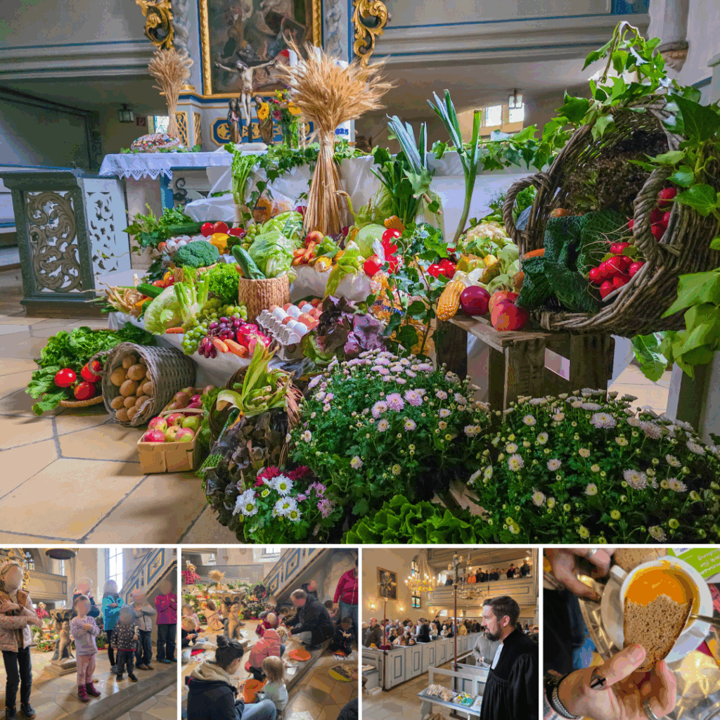 In Großhabersdorf war volles Haus beim Gottesdienst für Klein und Groß – mit Bastelaktion für die Kinder und viel Bewegung. Im Anschluss gab es Kürbissuppe in der Pfarrscheune. In Ammerndorf begleitet der Posaunenchor den Festgottesdienst musikalisch.